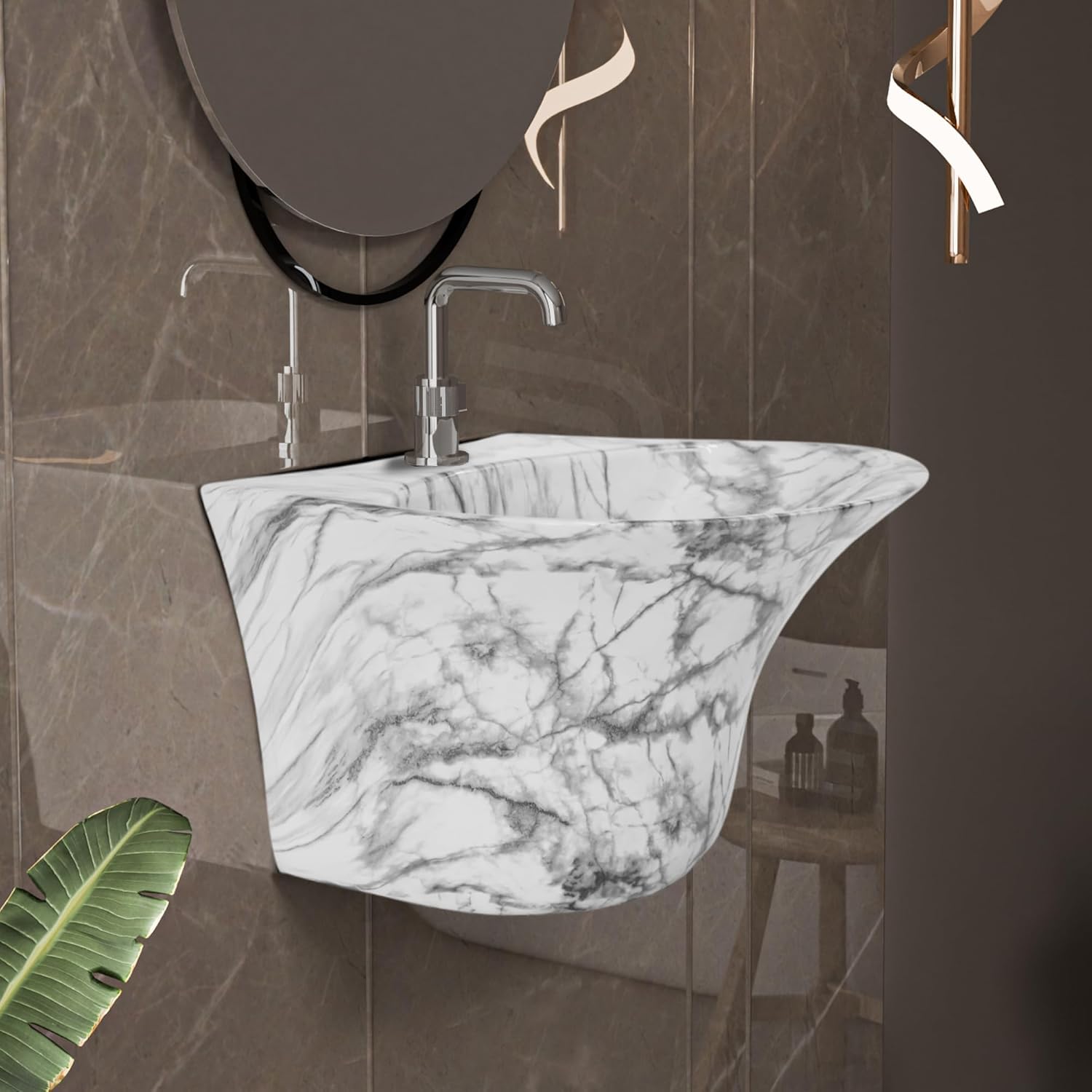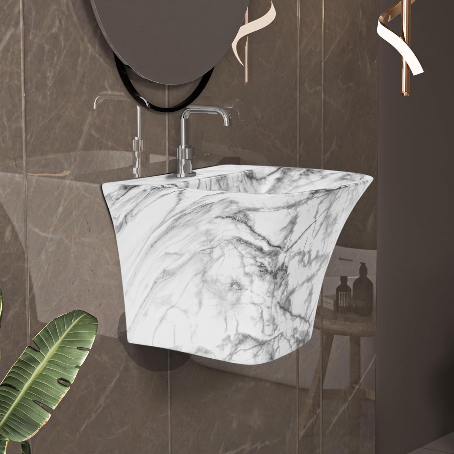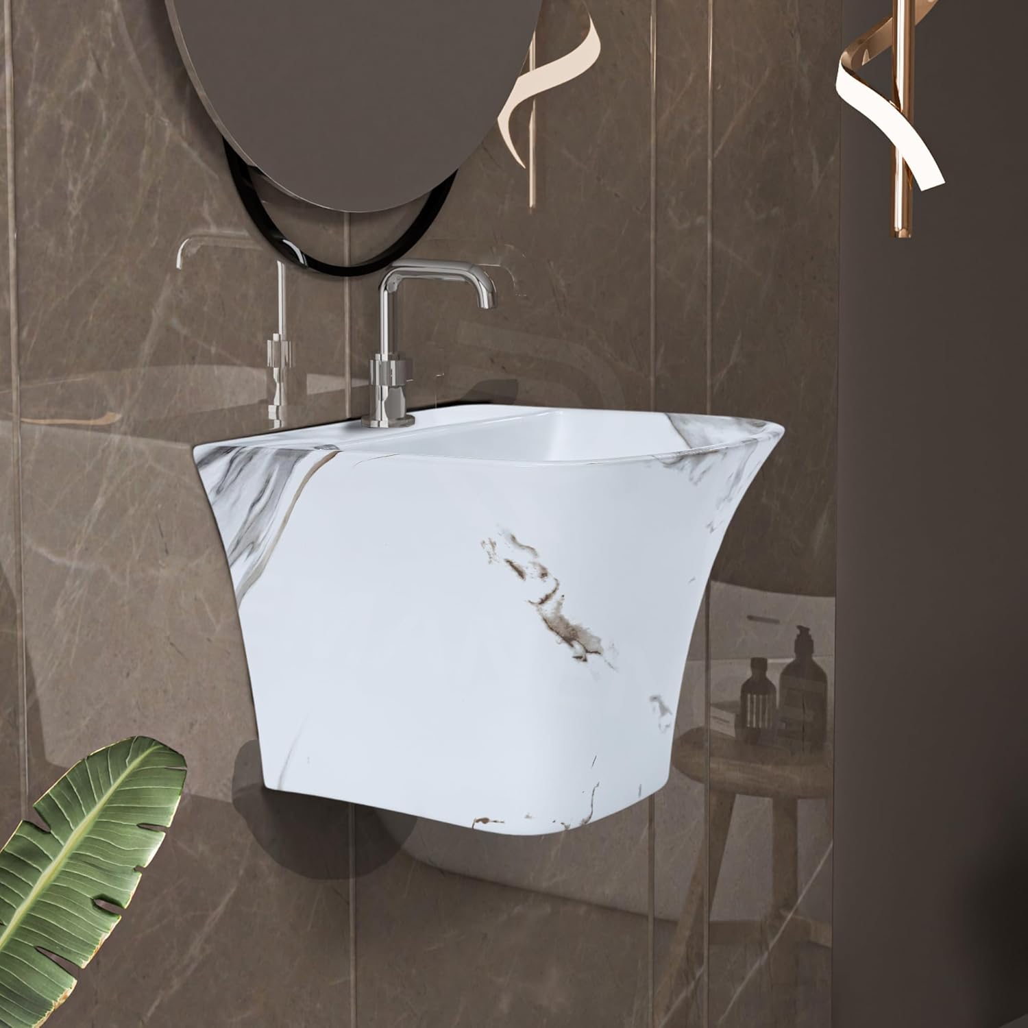 REMANENCE-RICH Luxury Wall Mount Half Pedestal Wash Basin for Bathroom (Black White Jelly)