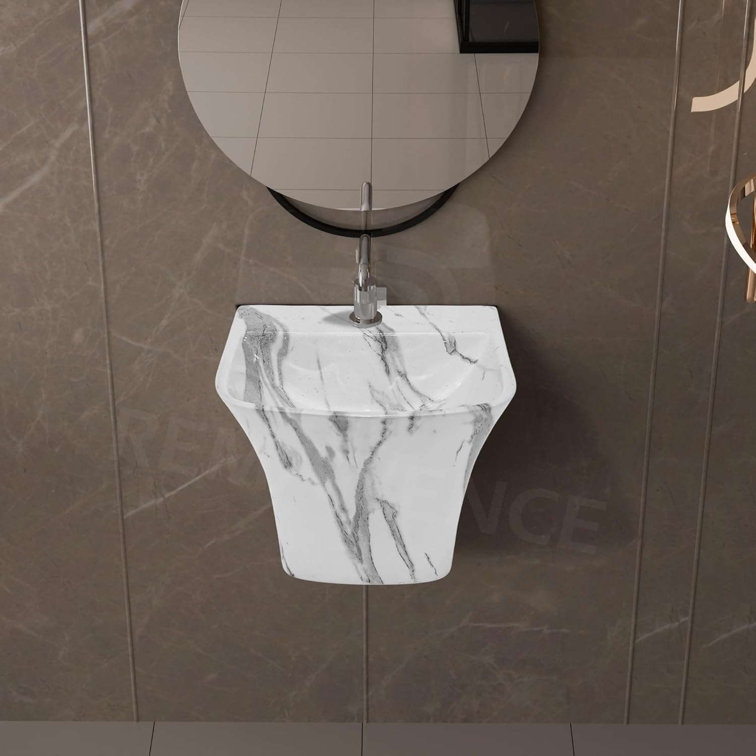 REMANENCE-RICH Luxury Wall Mount Half Pedestal Wash Basin for Bathroom (Marble Grey)