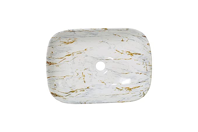 REMANENCE Designer Premium Table Top Wash Basin for Designer Showrooms, Fine-Dining Establishments, Upscale Hospitality Venues (18 x 13 x 5.5 Inch) (Glossy-White N Golden Strap)