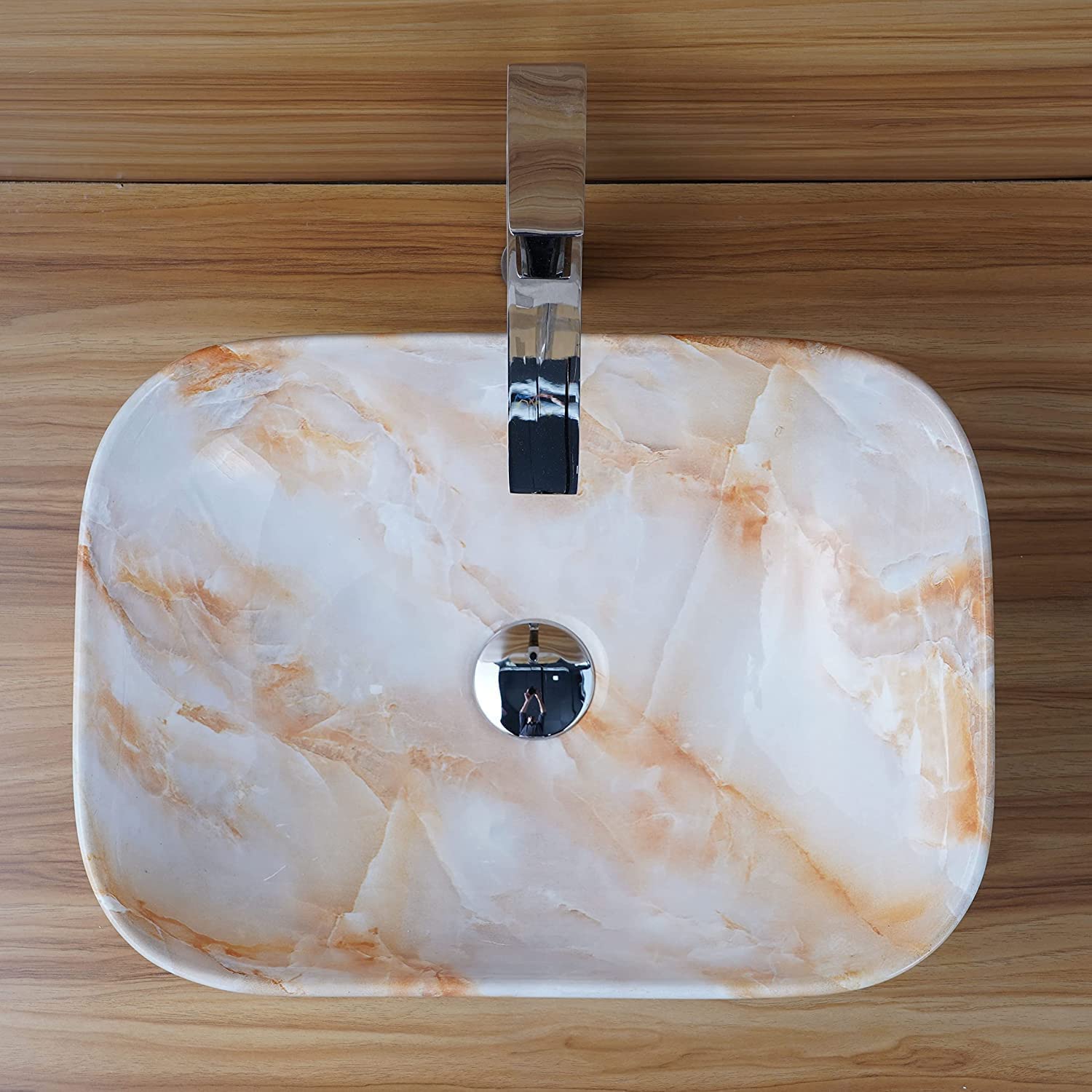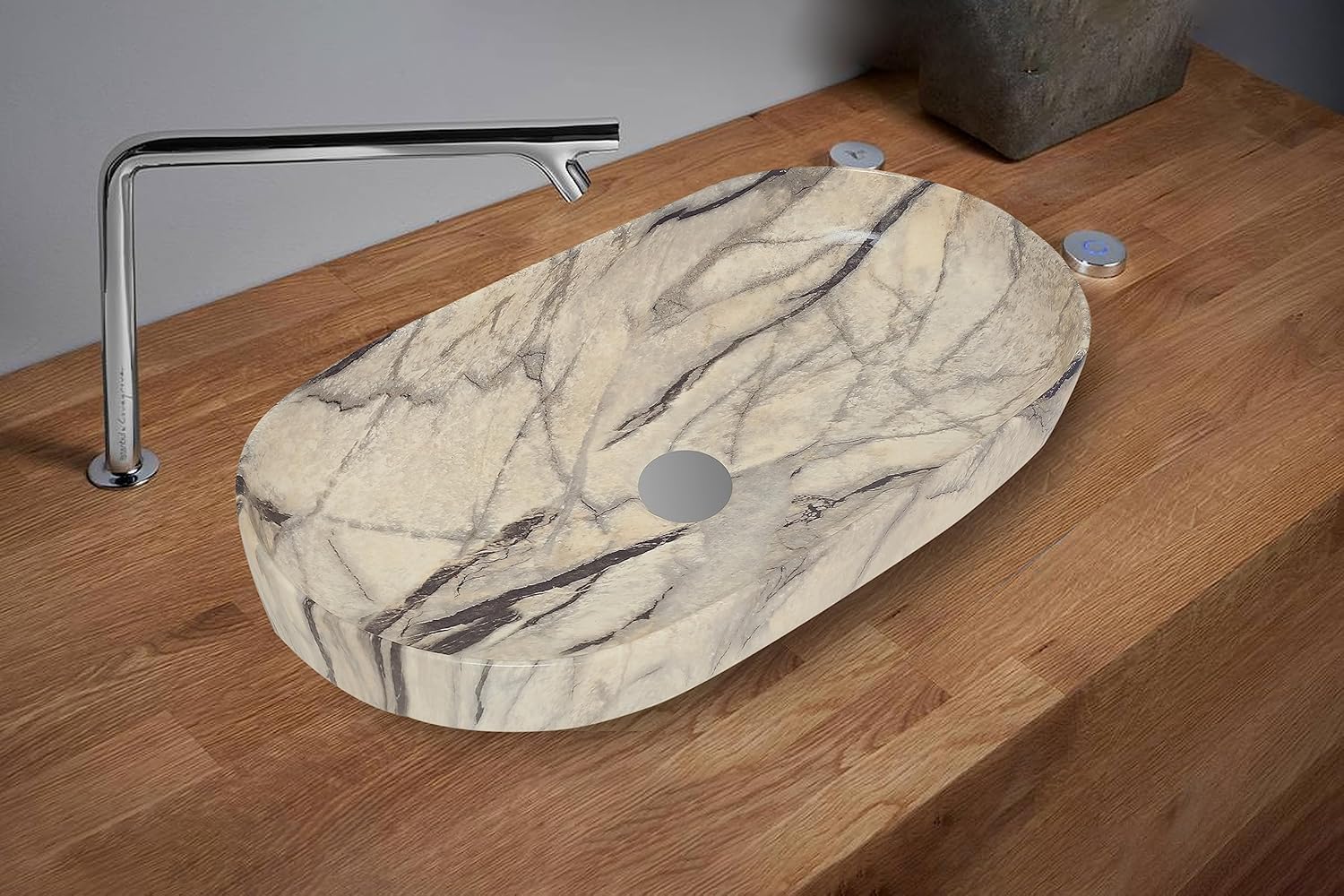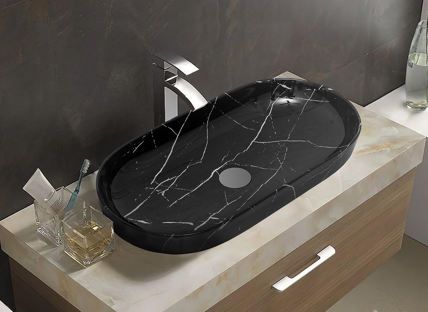REMANENCE Premium Designer Countertop Wash Basin for Premium Restaurants & Cafés, Luxury Bathrooms, Boutique Hotels & Resorts (28 x 14 x 5.5 Inch) (Beige Black)