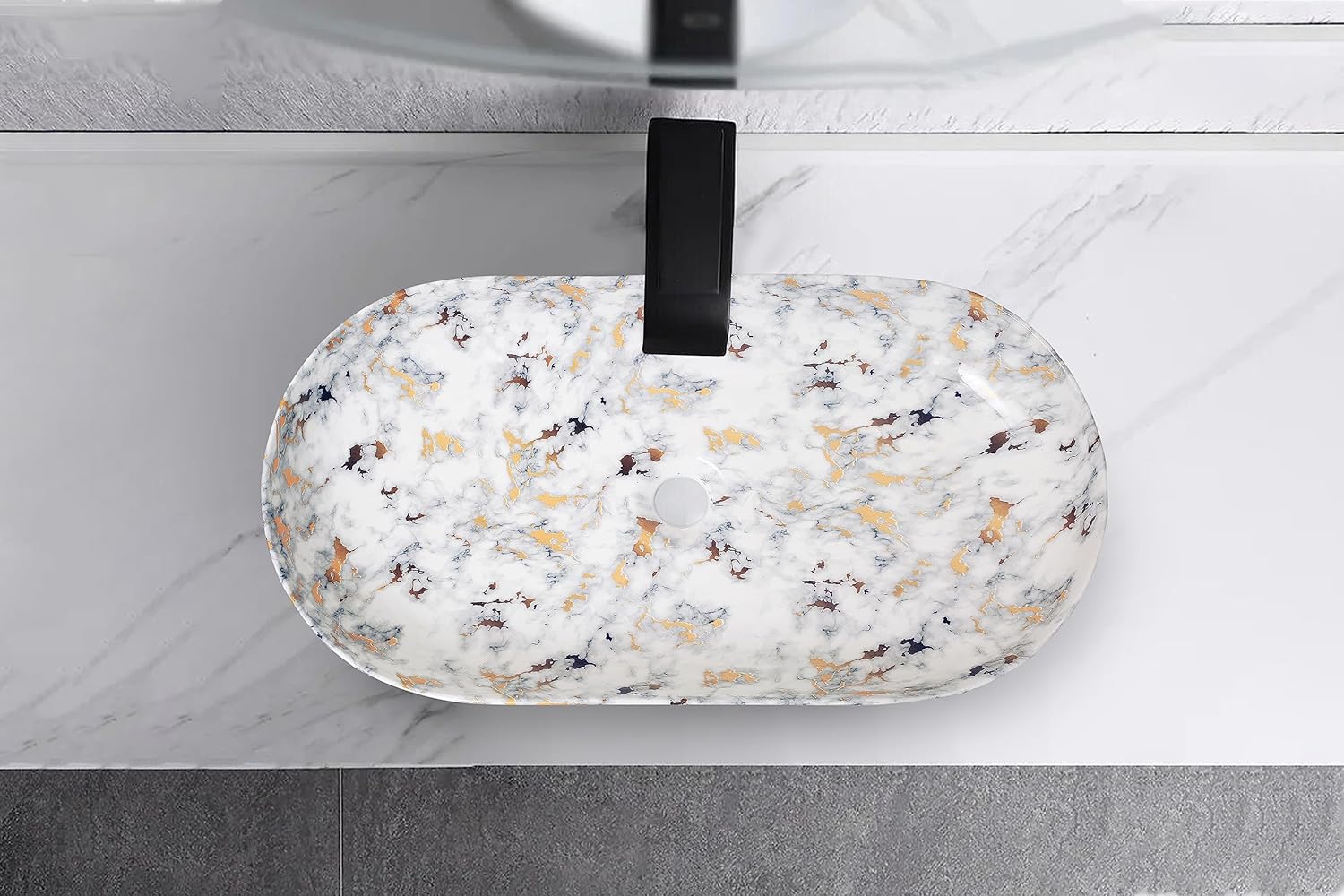 REMANENCE Premium Designer Countertop Wash Basin for Premium Restaurants & Cafés, Luxury Bathrooms, Boutique Hotels & Resorts (28 x 14 x 5.5 Inch) (Designer Black Gold)