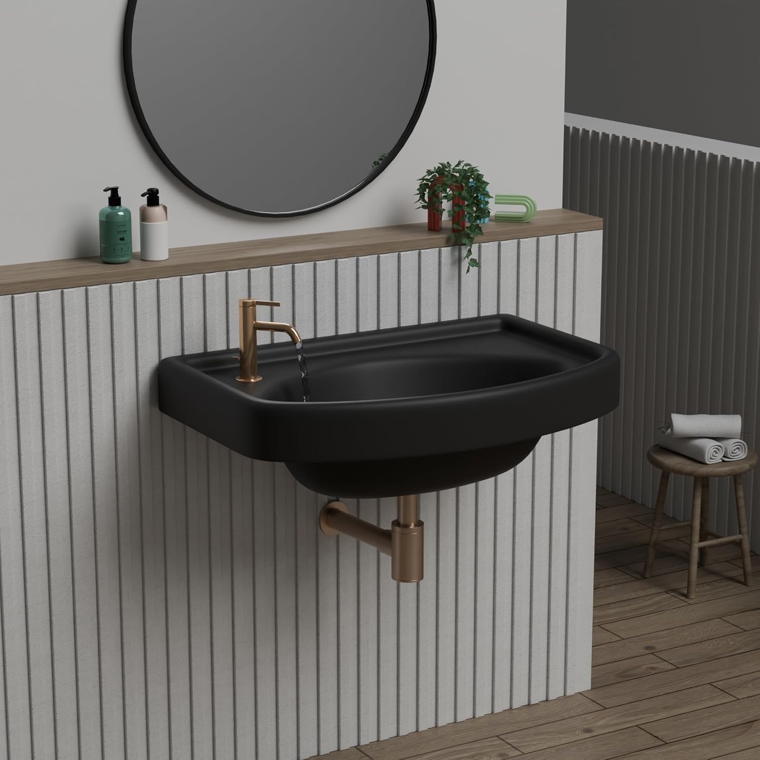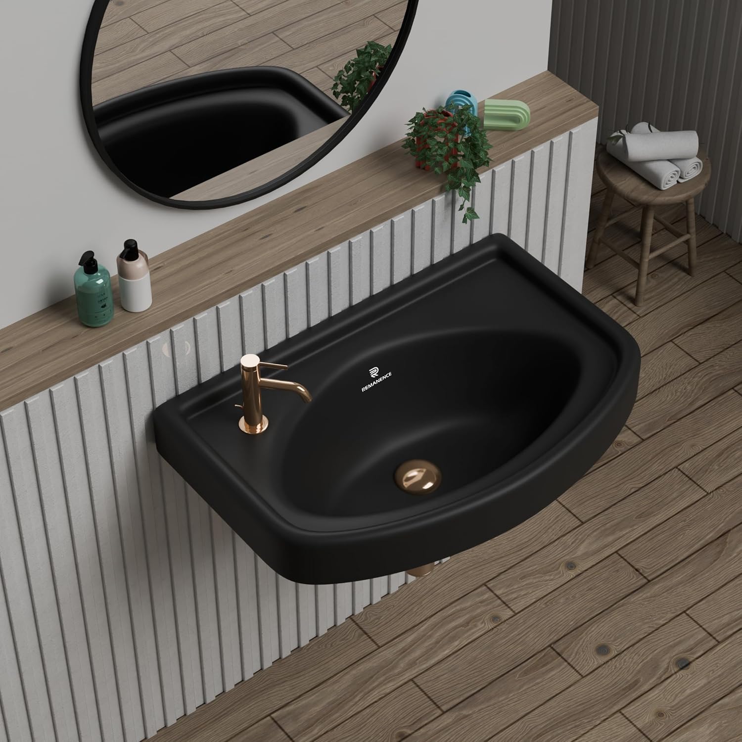 REMANENCE-GOLDEN Wall Mounted Wash Basin for Small Bathrooms & Powder Rooms (18.5 x 14 x 7.5 Inch)