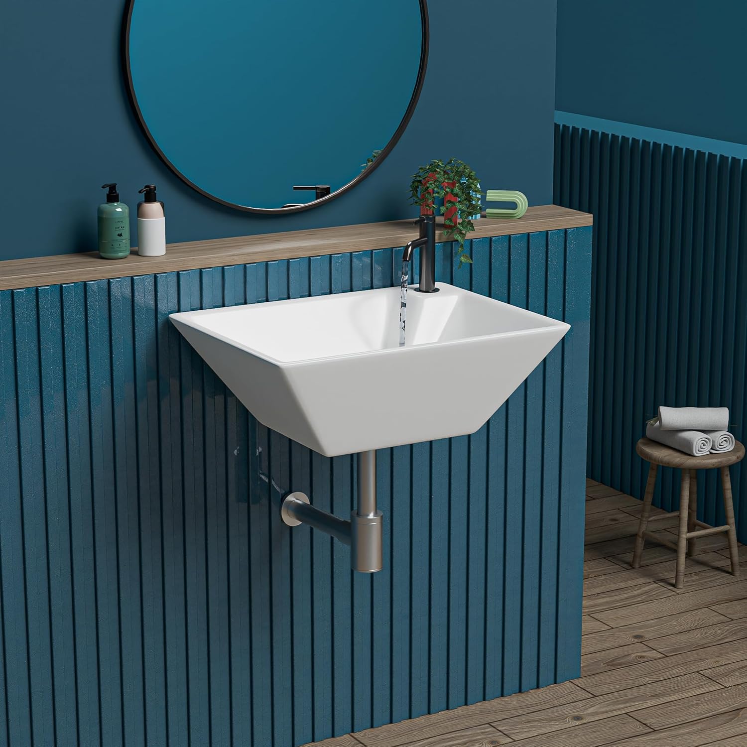 REMANENCE-MARTIN Wall Mounted Wash Basin for Small Bathrooms & Powder Rooms (21 x 16 x 5.3 Inch)
