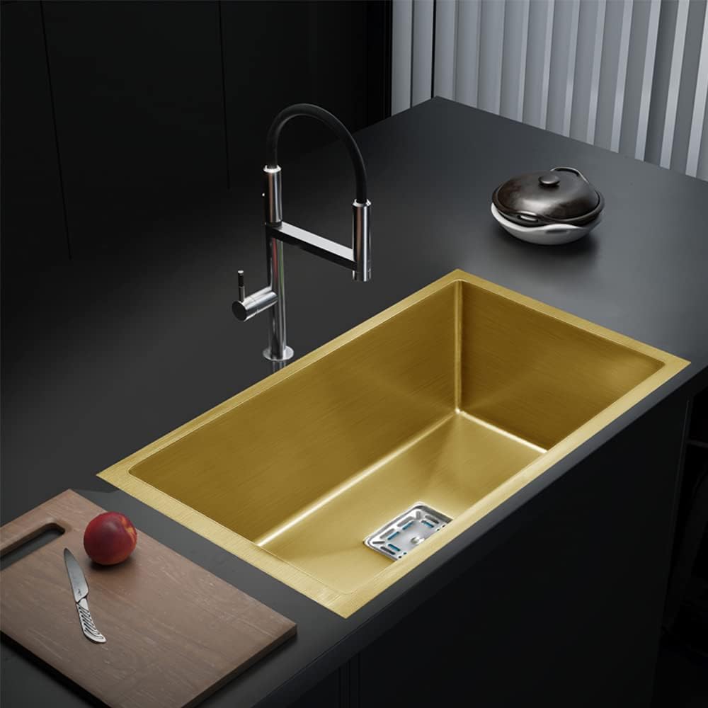 REMANENCE Premium 304 Stainless Steel Single Bowl kitchen Sink With Sound Proof Pads (24 x 18 Inch) (Gold)