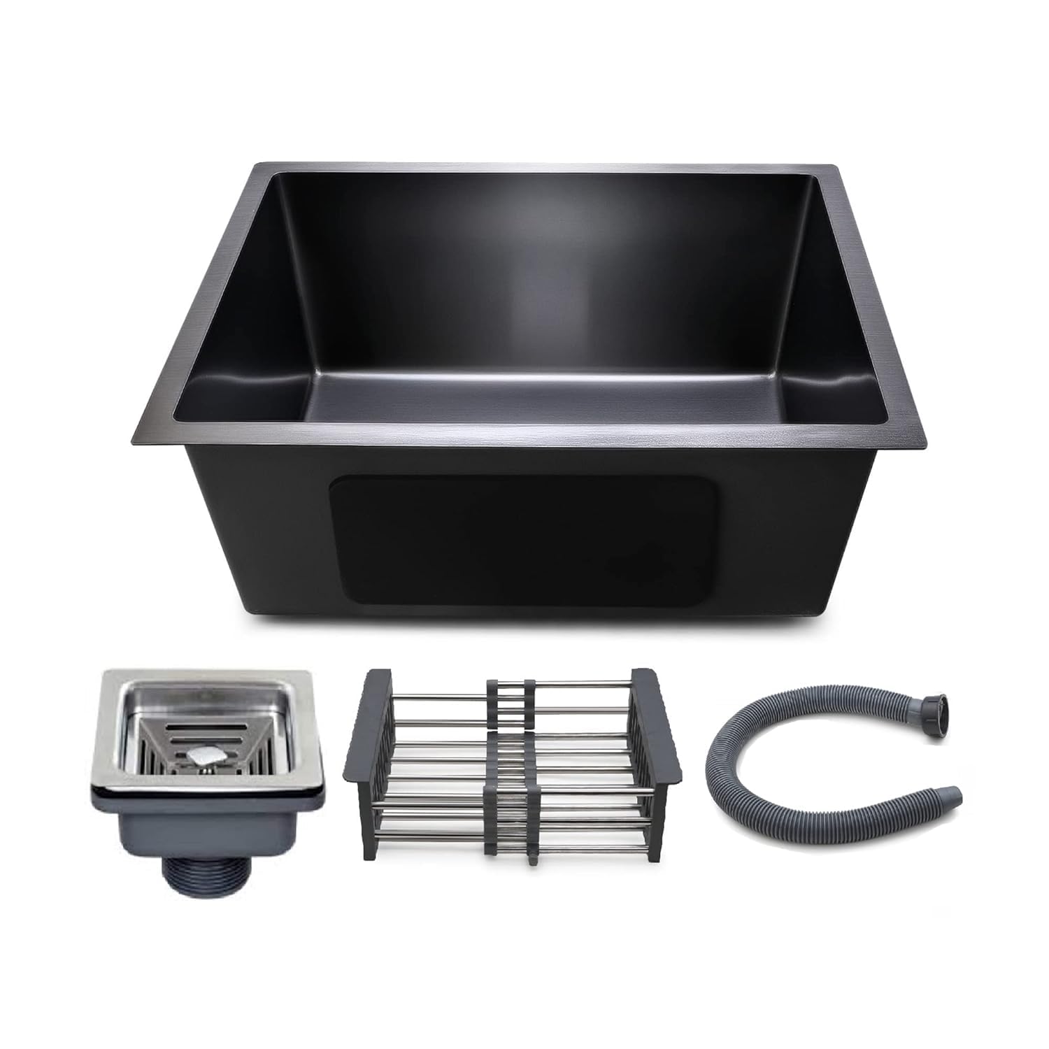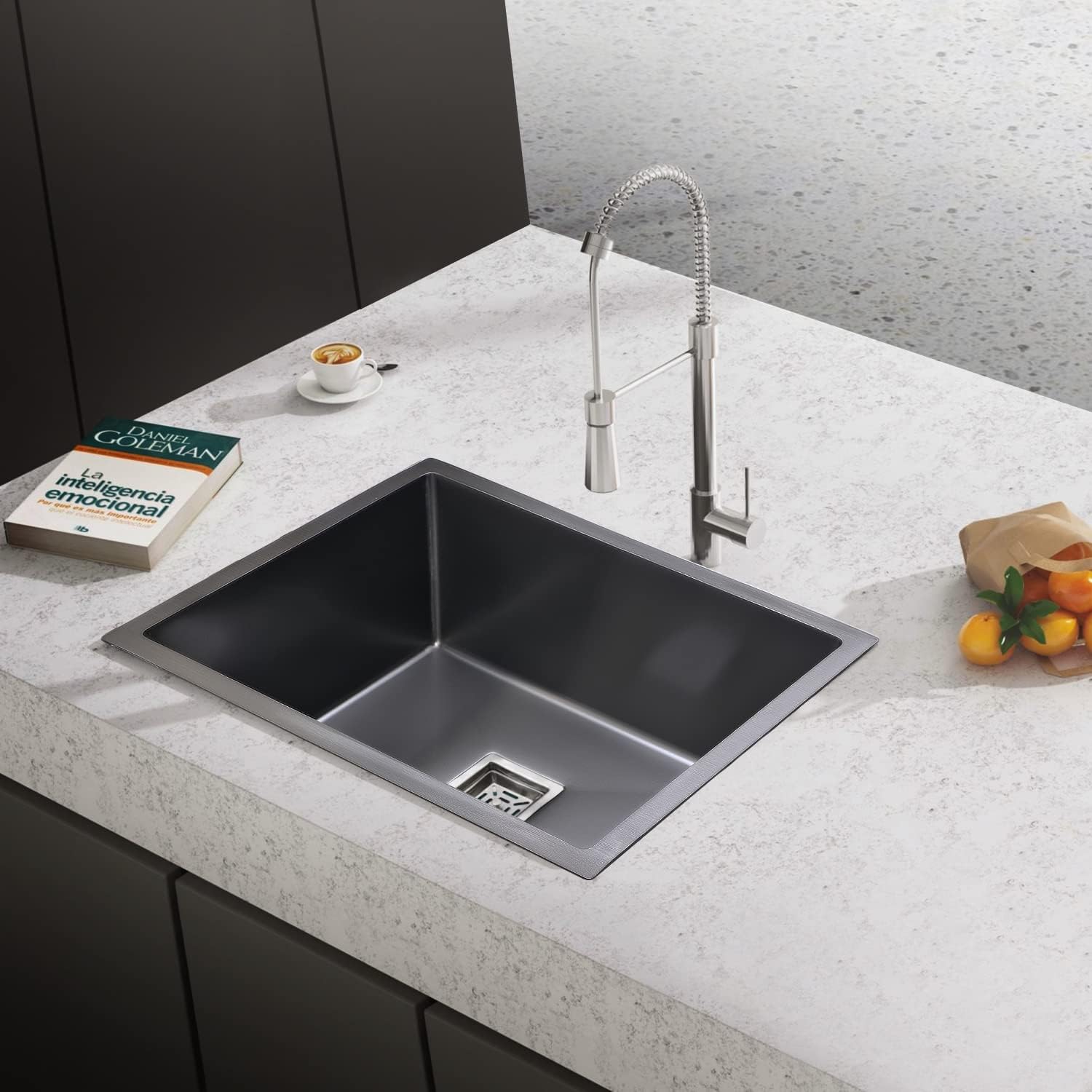 REMANENCE Premium 304 Stainless Steel Single Bowl kitchen Sink With Sound Proof Pads (24 x 18 Inch) (Black)