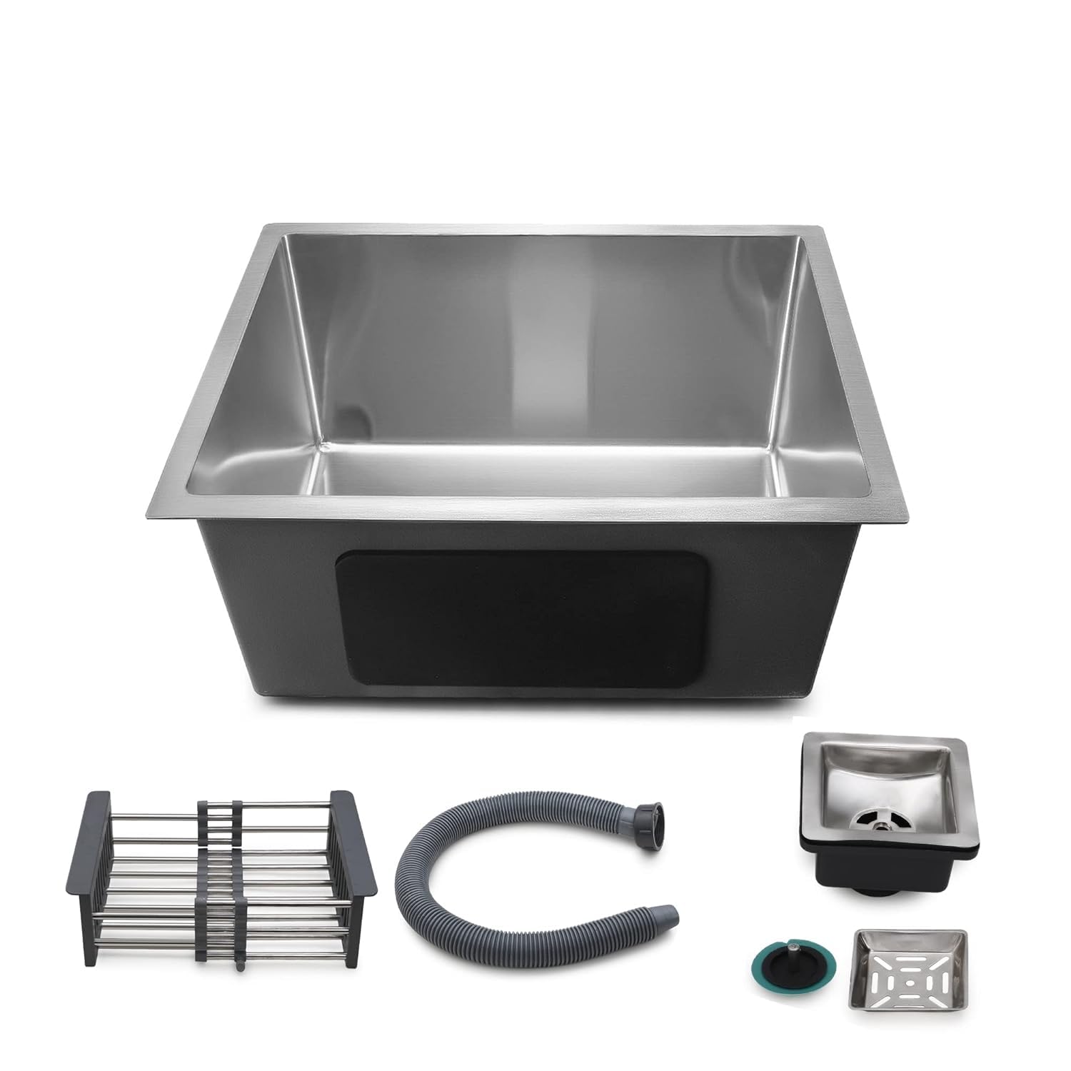 REMANENCE Premium 304 Stainless Steel Single Bowl kitchen Sink With Sound Proof Pads (24 x 18 Inch) (Silver)