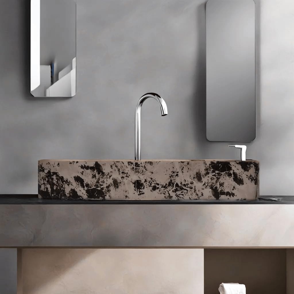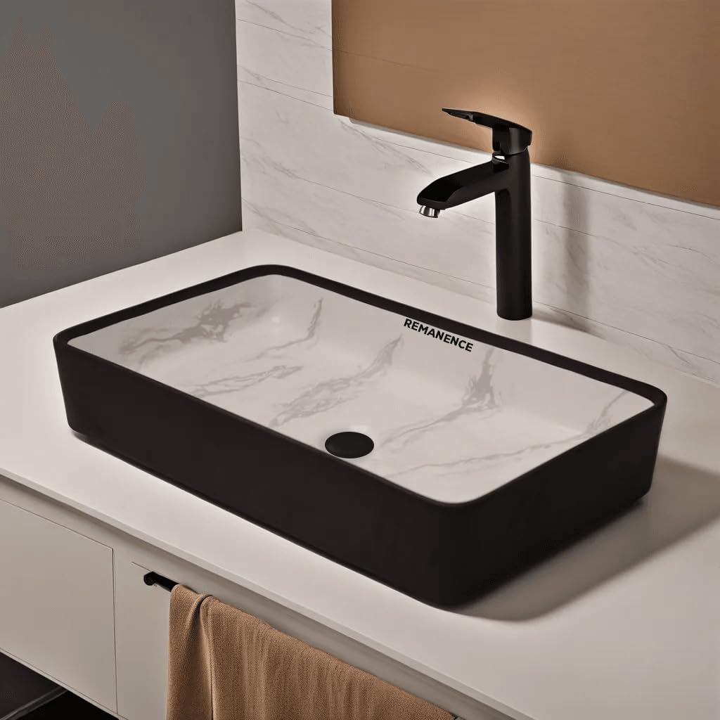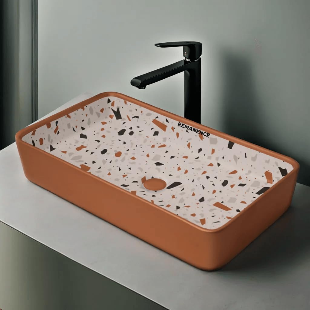 REMANENCE Designer Ceramic Table Top Wash Basin For Bathroom (24 x 14 x 5 Inch) (Brown N White Black SL 51)