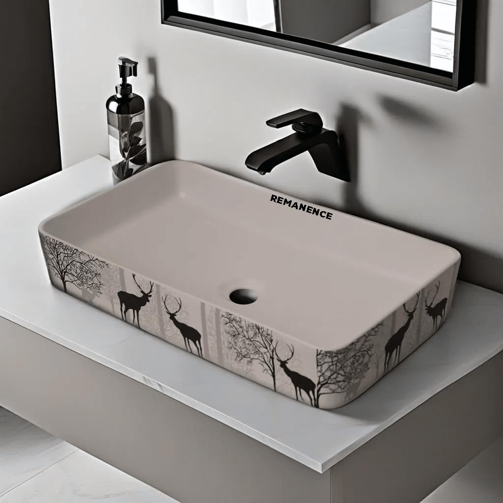 REMANENCE Designer Ceramic Table Top Wash Basin For Bathroom (24 x 14 x 5 Inch) (Animal Print SL 06)