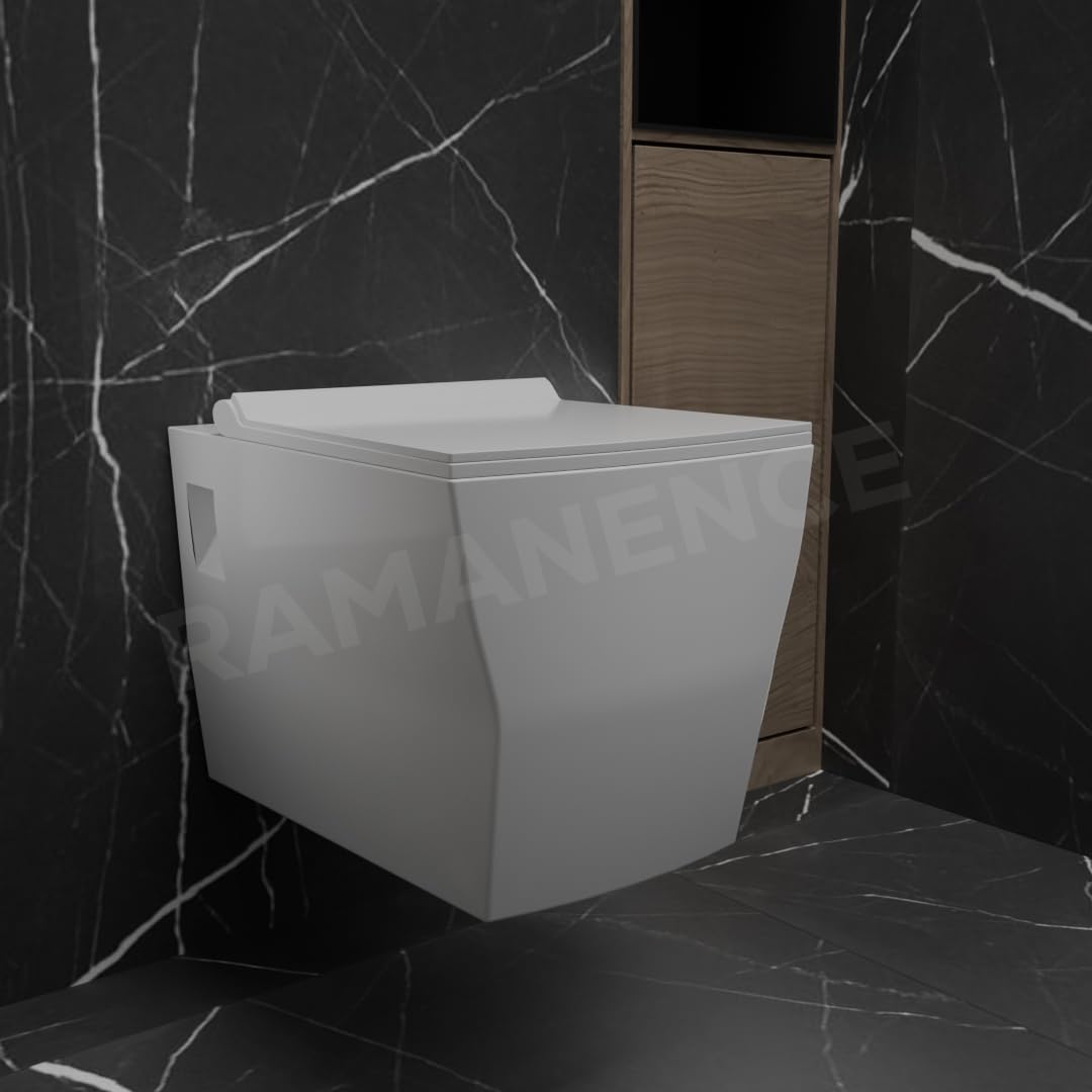REMANENCE-ATLANTIS Ceramic Wall Mount/Wall Hung Western Toilet Commode for Bathrooms With Soft Close Seat Cover