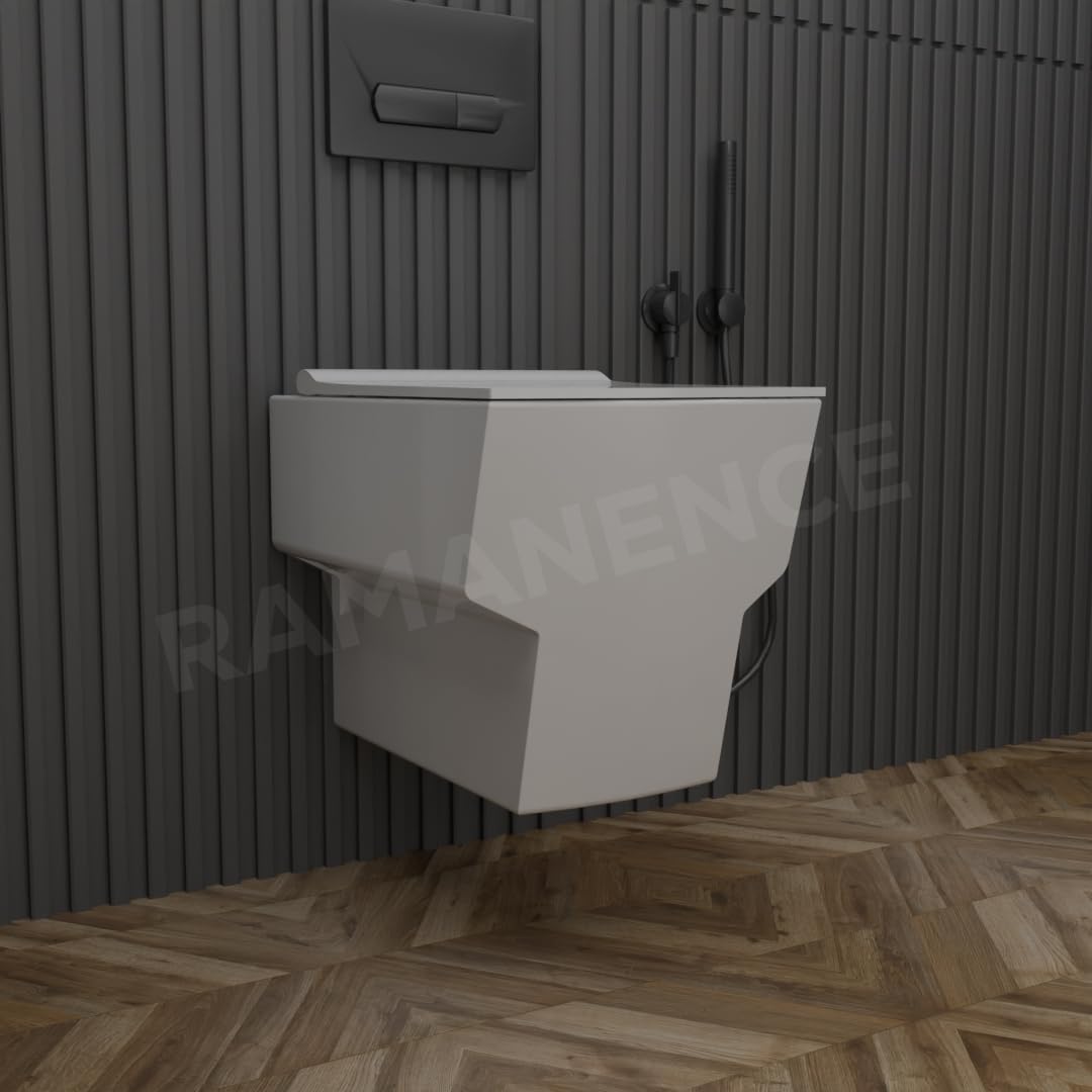 REMANENCE-TONIA Ceramic Wall Mount/Wall Hung Western Toilet Commode for Bathrooms With Soft Close Seat Cover
