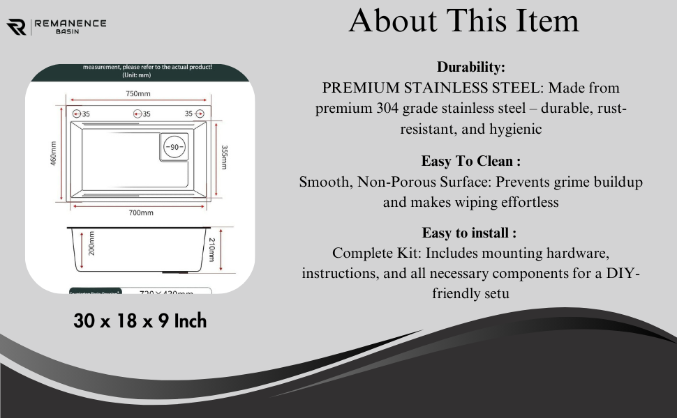 • Durable Material : This sink is made with premium 304 Grade Stainless steel, with excellent strength and durability, rust and dent resistance. The matte NANO coating surface will not have water stains, wipe clean for easy maintenance.